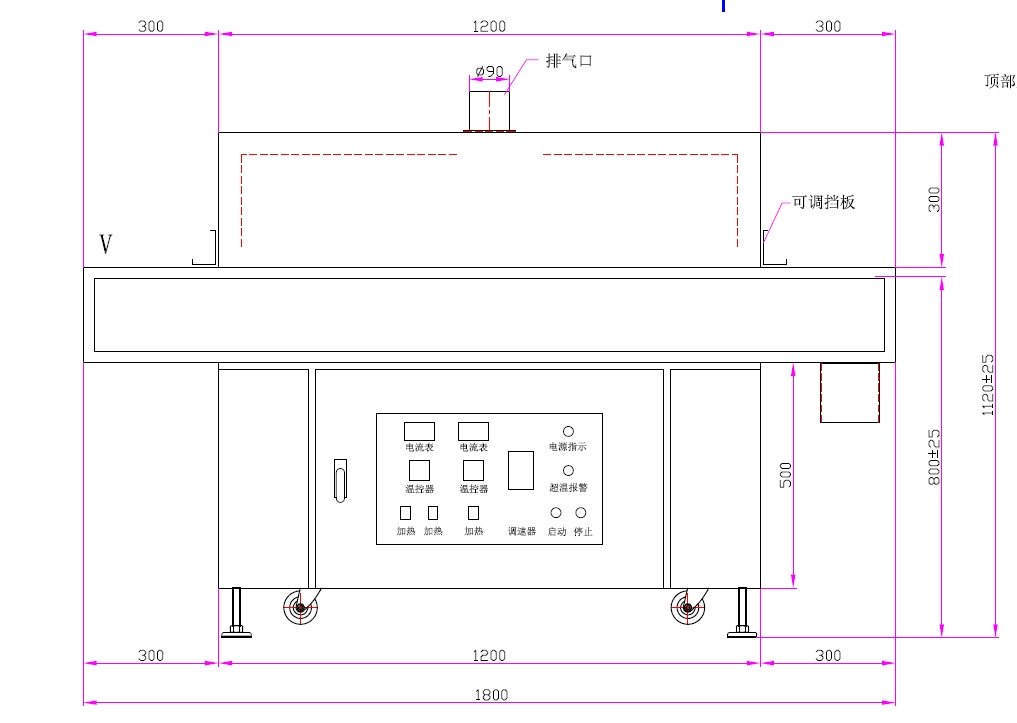 9、傳動鏈條使用一段時間后,會自然伸長,應及時調整,傳送網帶在使用過程中,由于溫度變化,可能出現跑偏現象,應及時調整。